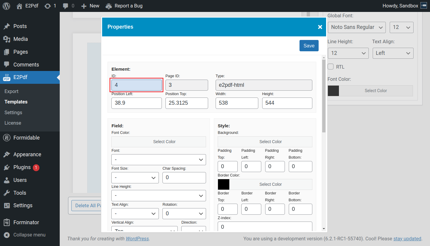 The Parent setting of the Child HTML Object must be set to the ID of the Main HTML Object::