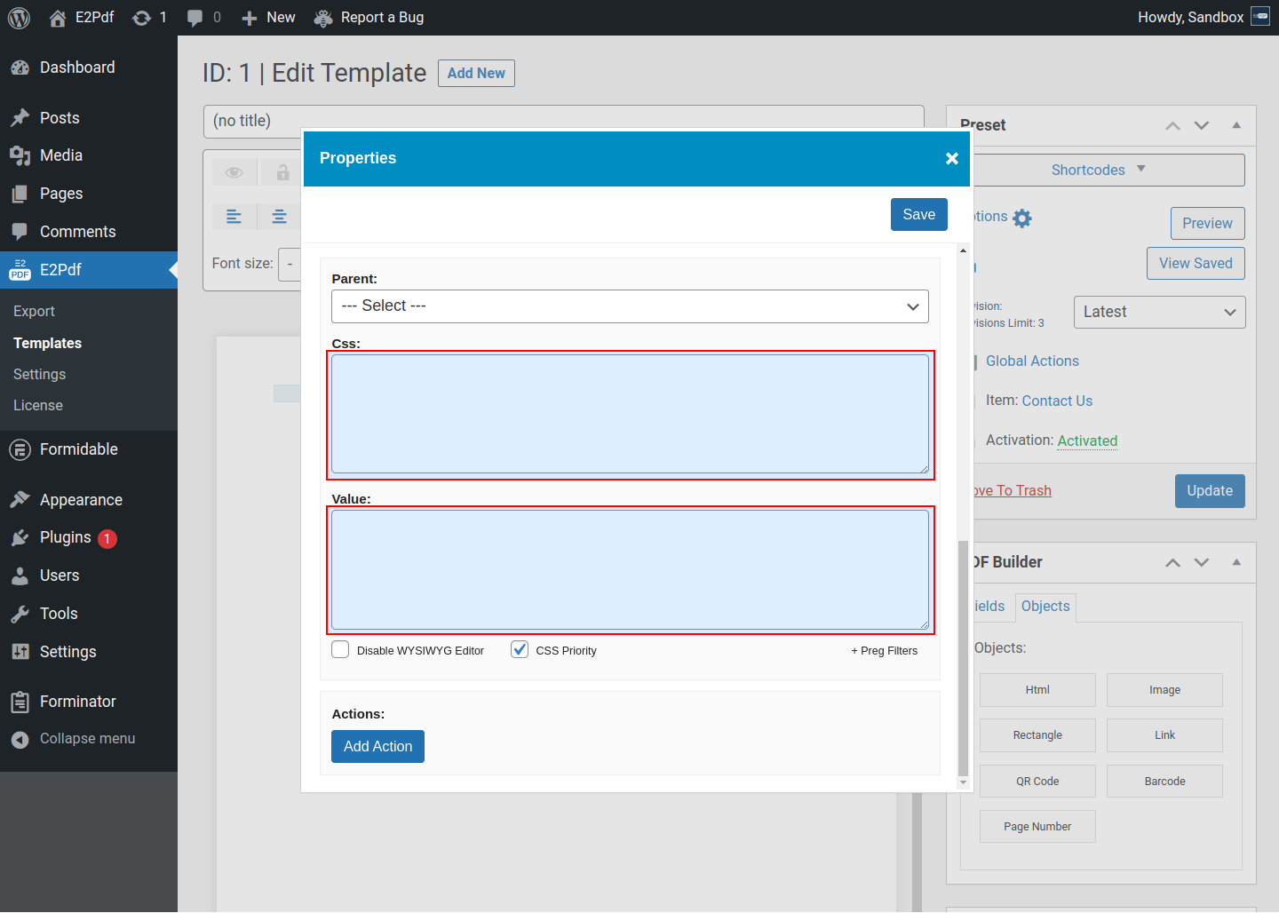 Font must be uploaded at E2Pdf -> Settings -> Fonts. Read More ››