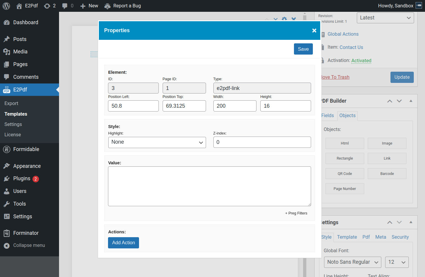 • Add Action - is a add actions and conditional logic to the link object to show, hide and change properties. See how to use: Read More ››