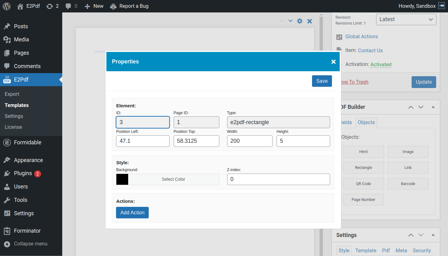 • Add Action - is a add actions and conditional logic to the rectangle to show, hide and change properties. See how to use: Read More ››