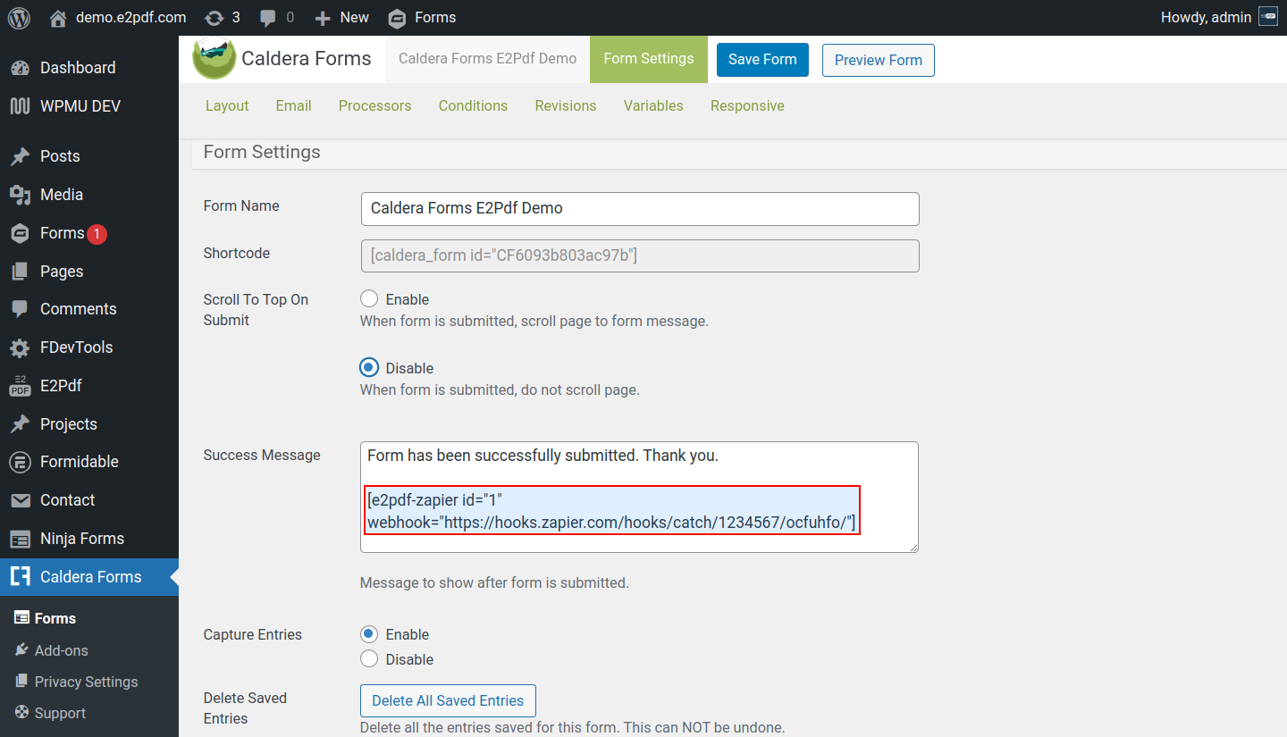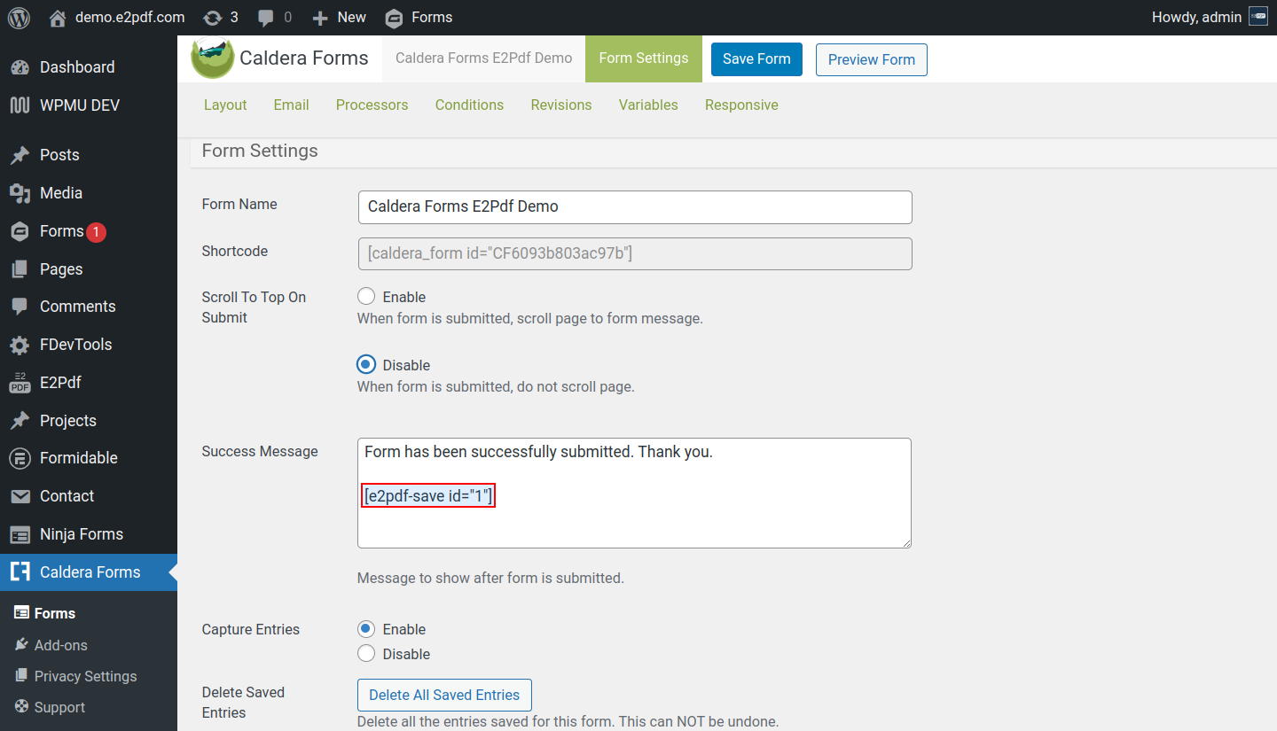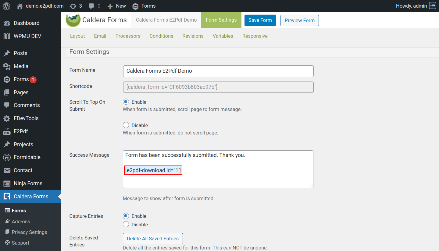 Caldera Forms PDF Generator