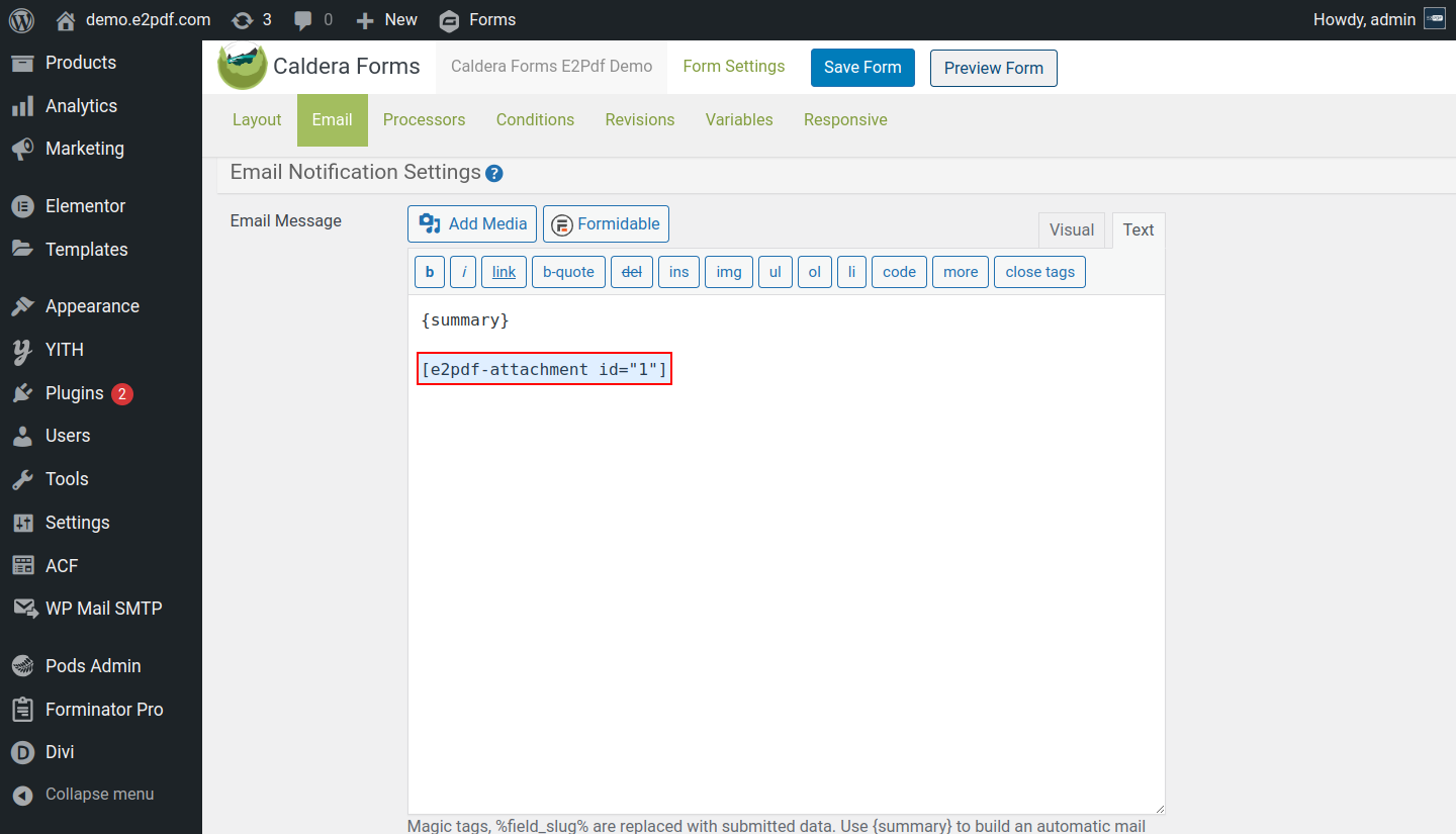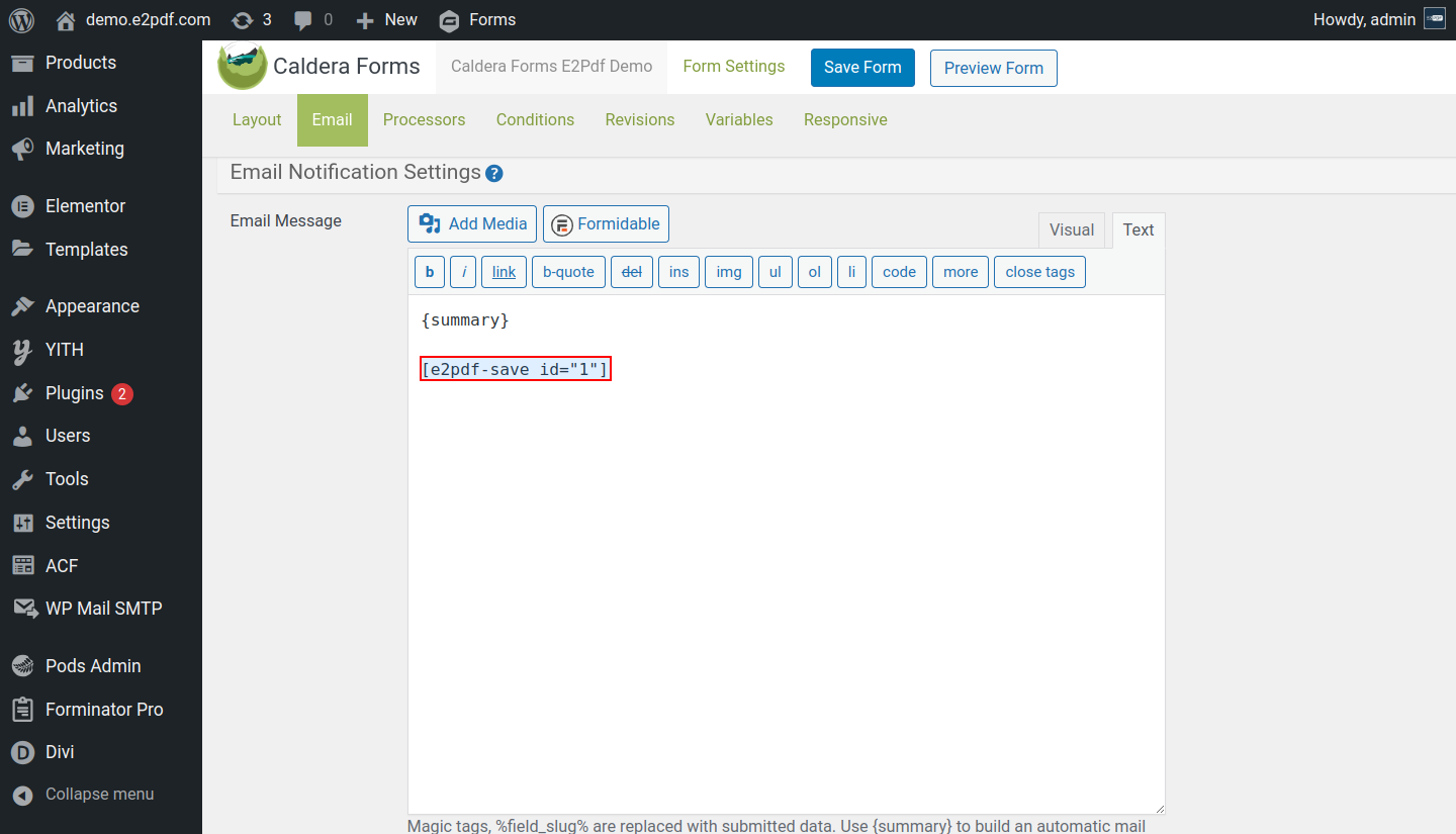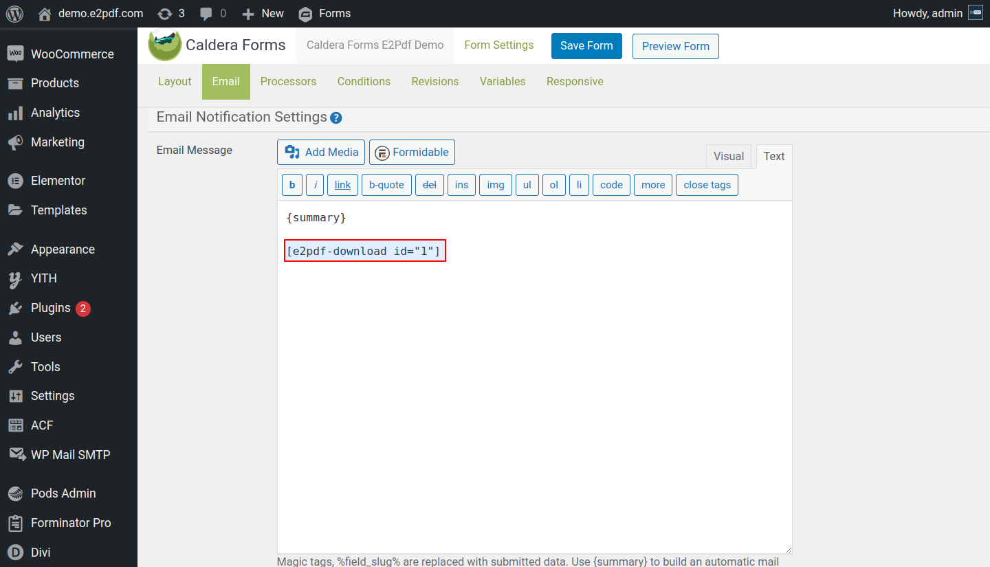 Caldera Forms PDF Generator