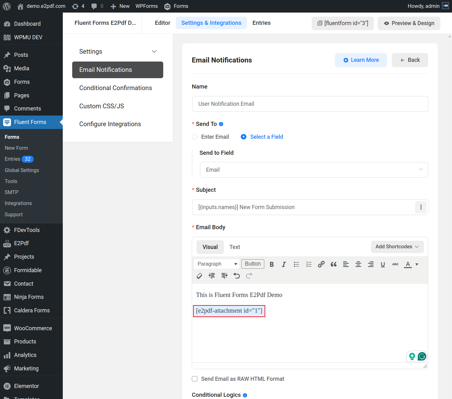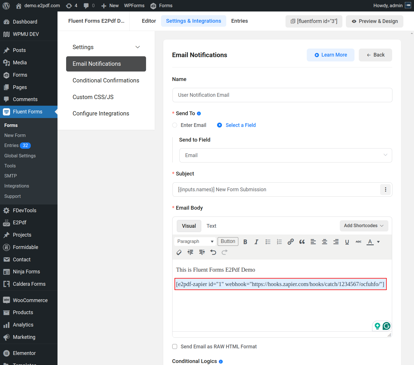 Get simple field value by field smart tag. Depending on the field tag used inside the form it can look as {inputs.key}, {inputs.key_index}, {inputs.key.subkey}, {inputs.key.subkey.index}, etc:
