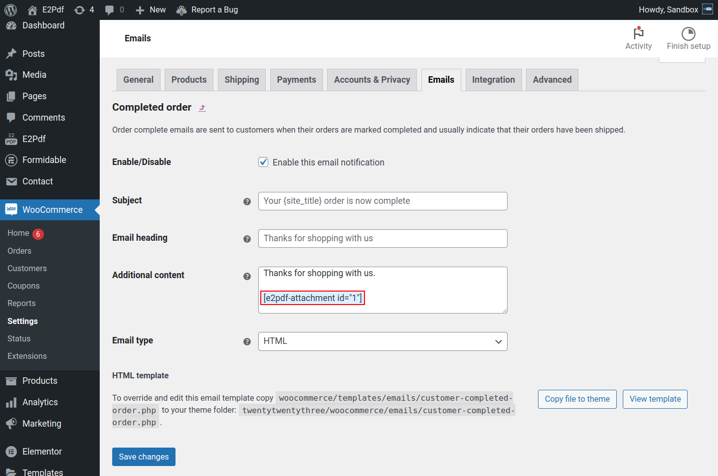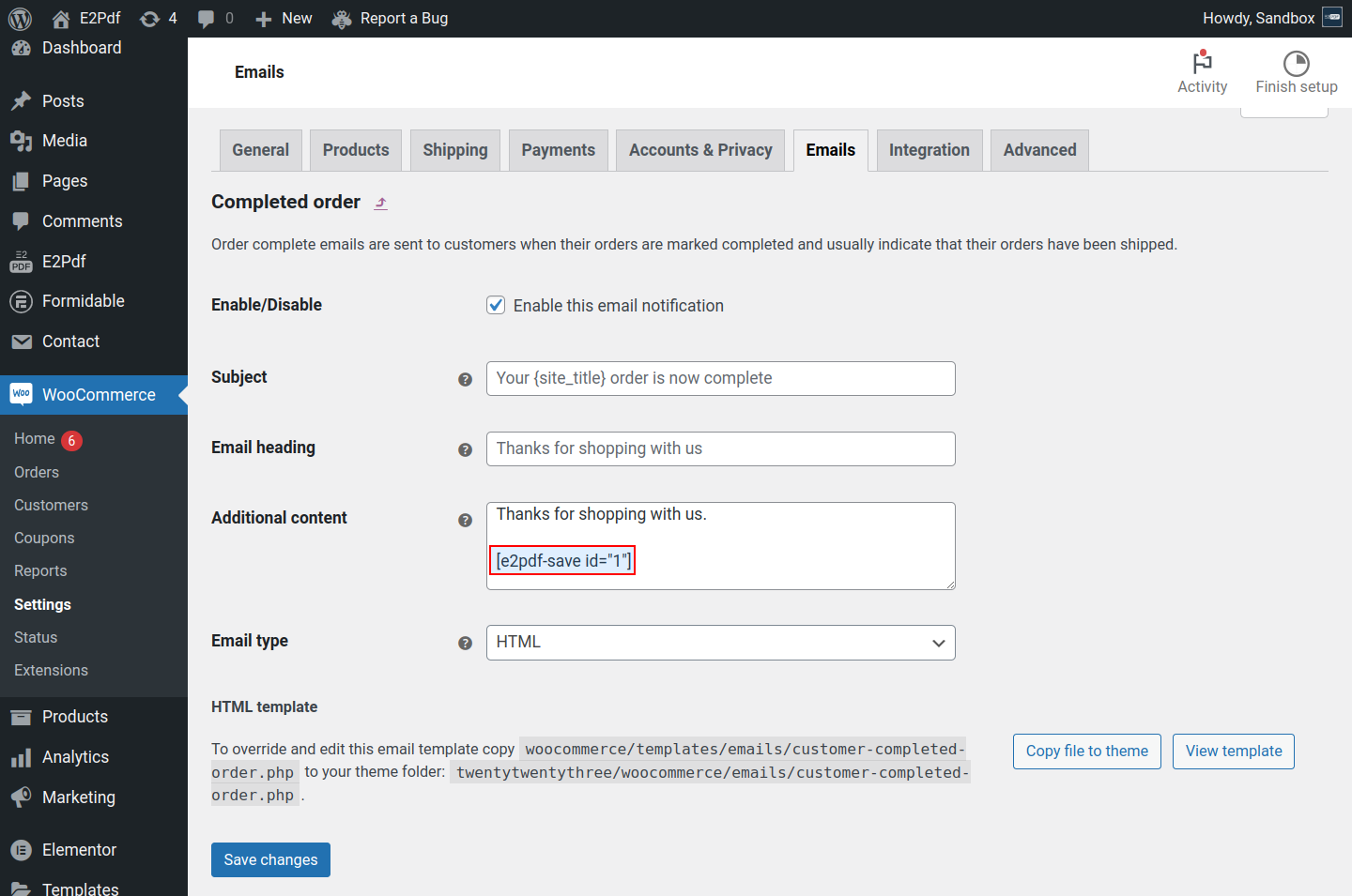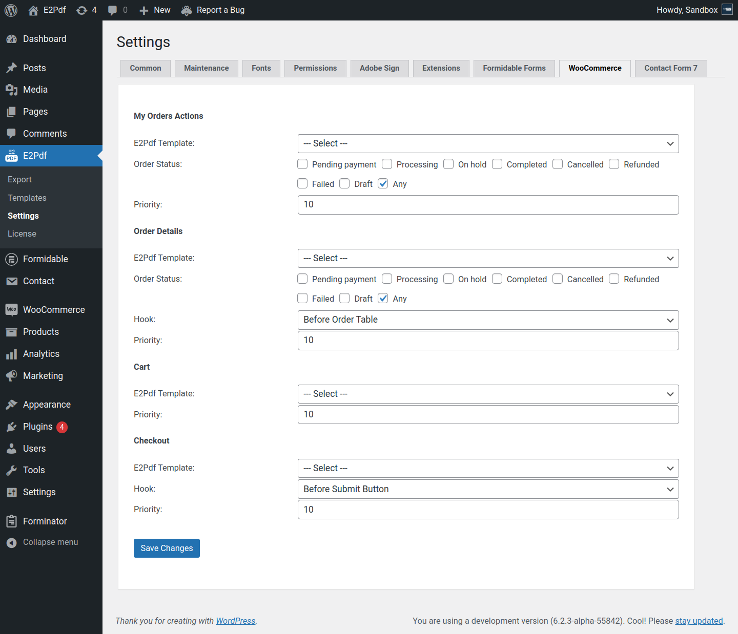 WooCommerce Additional Settings are available at E2Pdf -> Settings -> WooCommerce