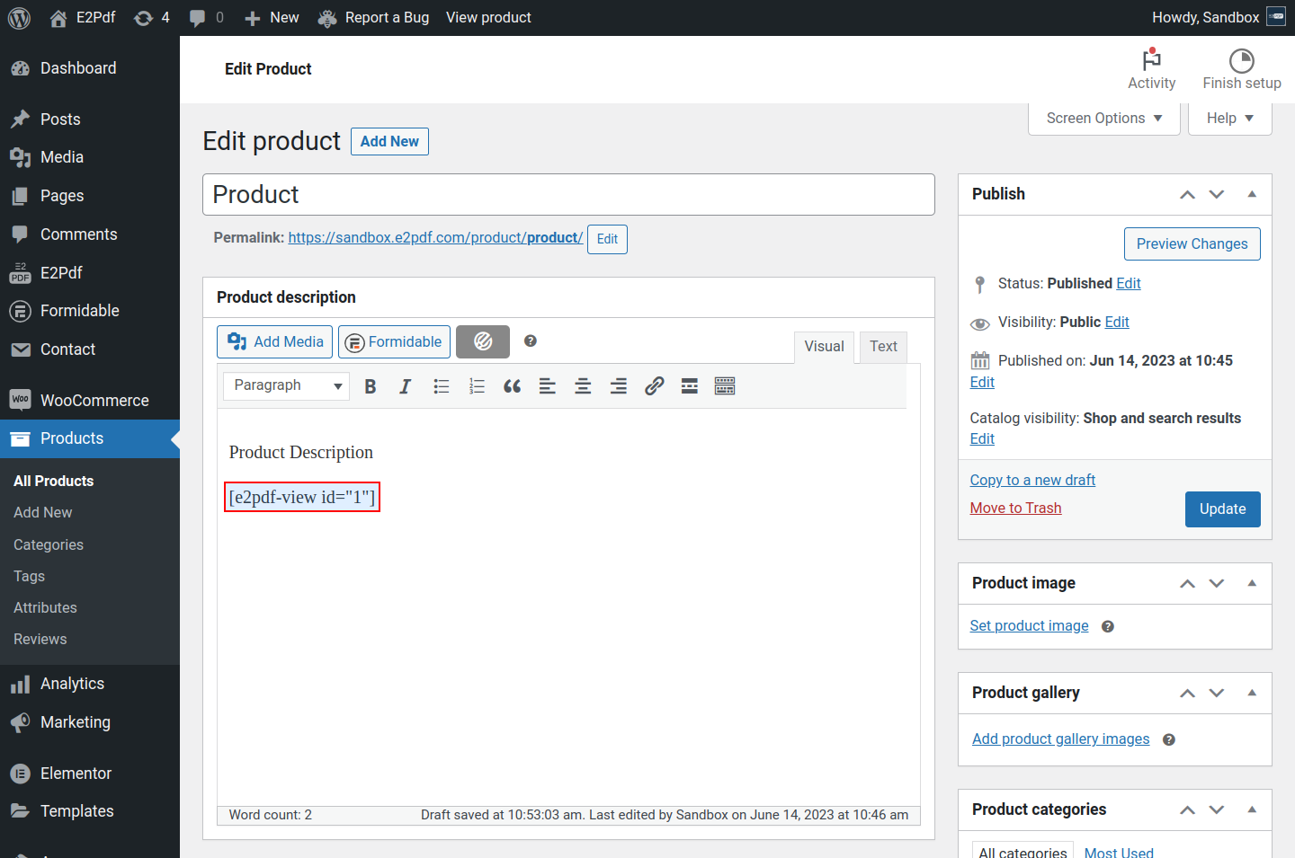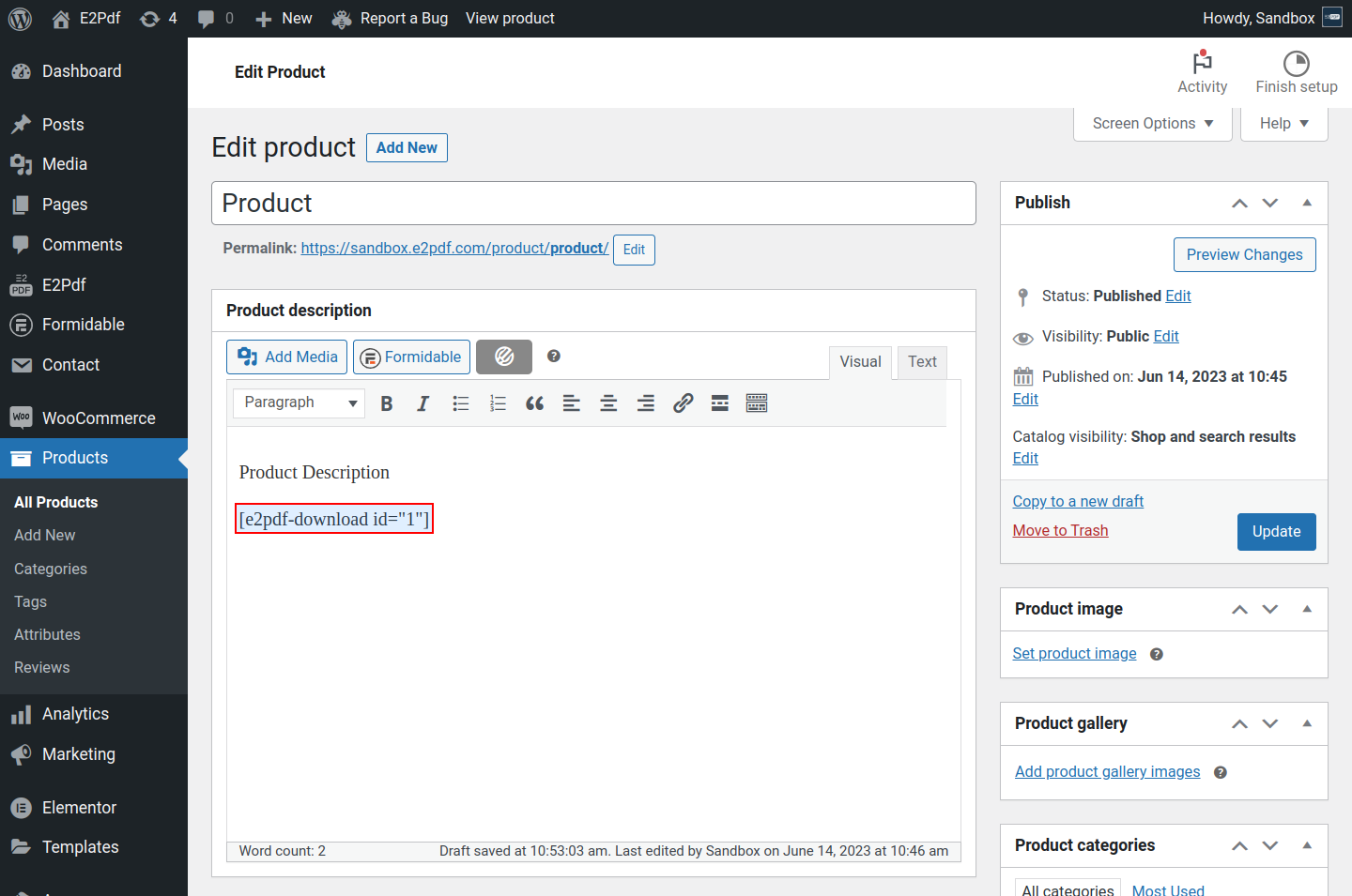 • products - it will generate and attach Product PDF only for the purchased Products / Variations have that have defined IDs.