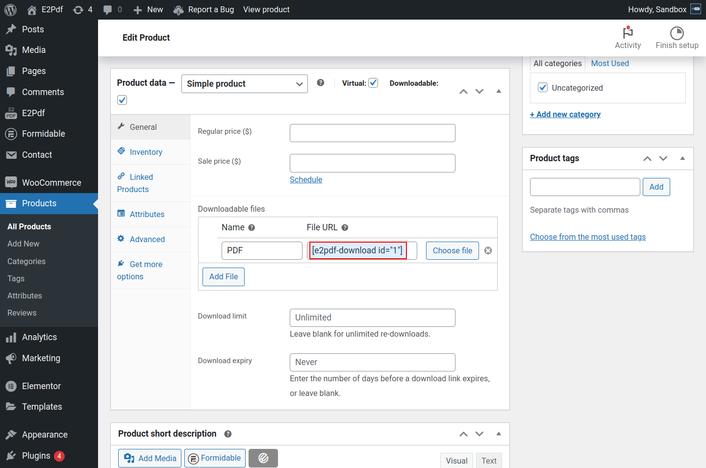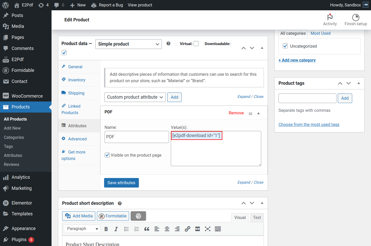 • tags - it will generate and attach Product PDF only for the purchased Products / Variations that have located in defined Tags.